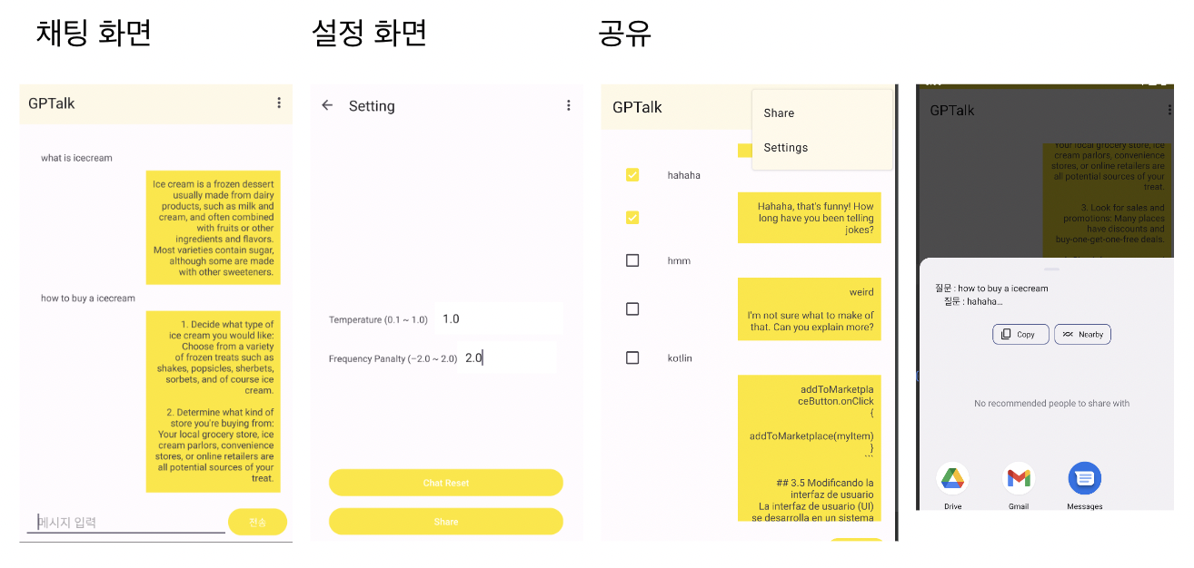 - 채팅 내용 공유 (시스템 공유하기 사용)